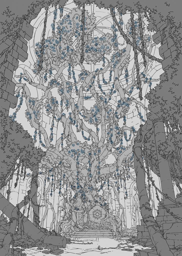 Valley of the Lanterns, BG Layout, Paint by Laura Bifano, © New Machine Studios, 2017